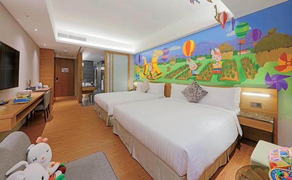 走進悅川前,就能看到名為乖乖與呆呆的兔子吉祥物以可愛之姿歡迎每位旅客的到來,而飯店內從公共區域設定、房間設計,直至備品的安排等,亦都加入了適合親子的元素。