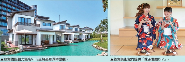 綠舞國際觀光飯店執行長藍心瑩表示,飯店內共有95間極景客房,10間Villa房型,同時擁有蝶舞咖啡廳、舞饌日式料理與多功能宴會會議廳等精緻餐飲服務;莊園建築包括日式展演廳、美術館、綠舞湖等,戶外庭園造景的部分,在不破壞自然生態的情況下,更能自在展現「遺世獨立」、「活在當下」的美感。