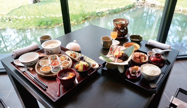 飯店準備了多種料理供您選擇,即使長期入住也不會感到厭倦。將台灣當地常見的食材和日本料理的烹調手法相結合,打造出創新的魅力美食。例如:鱘龍魚南蠻漬。透過事先油炸,鎖住魚肉的鮮美滋味,讓原本清淡的味道帶來新變化。而有著酸味的南蠻漬醬汁,讓這道菜格外適合在溫暖潮濕的台灣享用。來自日本的元素,不只展現在烹調方法中,還展現在盛放美食的器皿上。將日本料理裝在九谷、備前、有田等聞名世界的日本瓷器中,讓人眼睛為之一亮。期中最吸引人目光的是—寶樂盛,多樣的菜色用三層堆疊的方式呈現,代表梨山、獅頭山、八卦山,讓旅客一層一層的探索每一道隱藏的料理,像是打開珠寶盒一樣的讓人驚喜,也讓味蕾有了不同境界的豐富變化。而早餐的部分也有中式、日式、西式3種選擇,想要嘗試不同料理手法,家人、夫妻、情侶、朋友可以挑選不同風格的餐點,一次享受多種味覺饗宴。