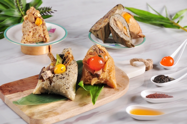 義大皇家酒店與義大天悅飯店今年推出不同風格的粽子禮盒,送禮自用兩相宜。義大皇家酒店「情深義粽禮盒」,嚴選瑤柱八寶台灣粽3入、鮑魚裹蒸粽2入、以及堅果紫米養生粽3入,3種款式共8顆,更特別的是,今年創舉,禮盒附上「蒜味甜辣醬」與「桂花蜜汁」兩種獨家自製口味蘸醬,無論搭配肉粽,或是拌麵拌飯,多種吃法。義大天悅飯店則是推出2款禮盒,「古早八寶粽禮盒」將海鮮食材—淡菜,與古早味滷肉香包覆一起,海味甘美的口感與傳統粽餡料加乘,毫無違和感;另外,為了滿足茹素者味蕾,還首次推出「好事花生素粽禮盒」。