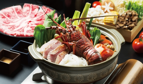 ▲礁溪晶泉丰旅海陸龍蝦鍋物晚餐。