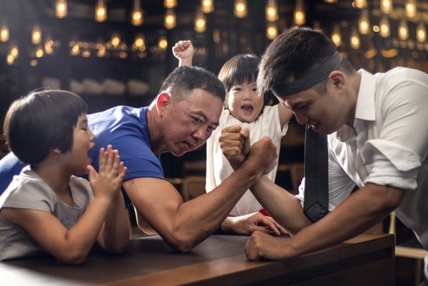 ▲3間餐廳同步進行,邀請用餐的老爸們加入腕力比賽的活動。