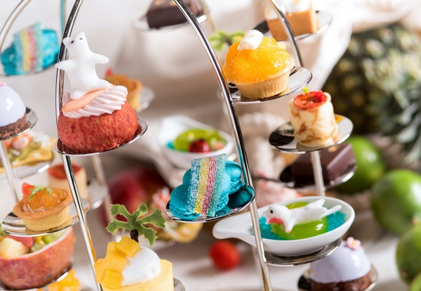 ▲台北六福萬怡酒店The Lounge推出清涼系鳥籠下午茶,吹夏威夷度假風。