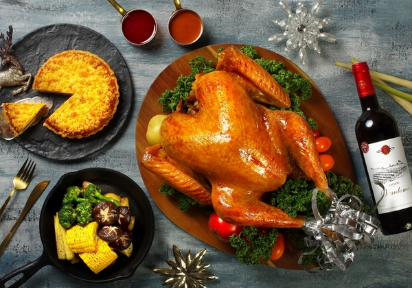 為了讓台灣消費者體驗感恩及聖誕節氛圍,福容大飯店台北二館今年首度推出「爐烤美式火雞感恩聖誕經典組」,火雞重量不僅從4公斤增量至5公斤,足足增加20%,享福卡會員更加碼贈送法式水蜜桃氣泡酒1瓶及聖誕手工餅乾,經典組合搭配香濃火雞肉汁、經典德式帶骨香腸、軟式法國麵包、繽紛季節時蔬、主廚特製薯泥,原價每組3,680元,優惠價3,280元,享福卡會員獨享價只要2,999元,在家與親友團聚也能享用道地豐盛火雞大餐。