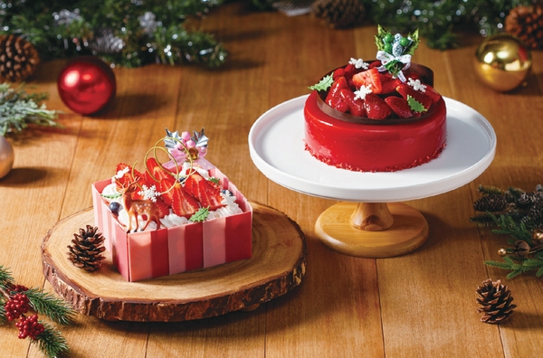 ▲國賓麵包房推出「聖誕紅酒草莓慕斯蛋糕」與「舒芙蕾乳酪奶油聖誕蛋糕」。