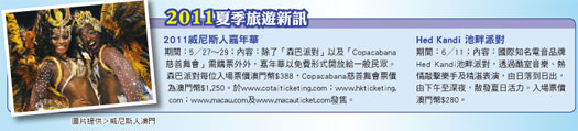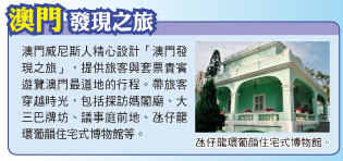 ◆ 特惠方案:冰FUN世界夏日套票,含雙人入住豪華分層式皇式套房1晚、早餐、入場門票2張等,1,698元港幣起,入住2晚,即可免費獲贈太陽劇團「Zaia」B區門票2張或澳門發現之旅半天遊雙人套票等,入住3晚,可免費升級至路氹景觀套房,亦銷售團體套票。只要再加港幣100元,就可以有一個小朋友同行。