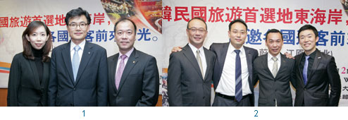 1.復興航空營運處客運營業部業務代表汪志潔(左)、韓國觀光公社台北支社長劉鎮鎬、復興航空營運處客運營業部業務經理陳泓達。 2.(左起)佳品旅行社副總經理李道珩、釜山航空台北分公司總經理李京玟、主任洪政熙、韓國觀光公社新任課長韓廷弼。
