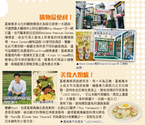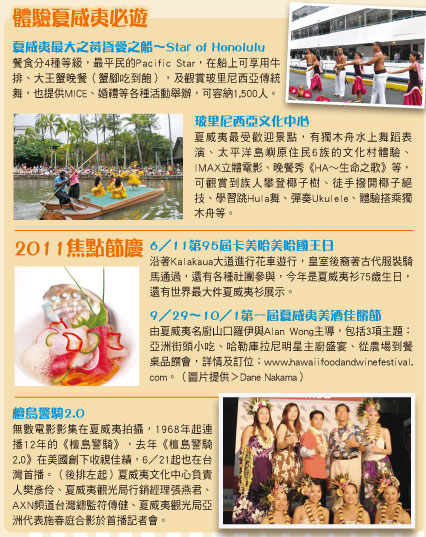 施春庭指出,夏威夷既有熱鬧的大都會,也有罕無人跡的小島,既有終年如夏的海灘,也有終年積雪的火山,擁有大島的熔岩沙漠、可愛島的高地雨林等各種地質,可從事海、陸、空各種活動,滿足現代人既仰賴便利生活,又嚮往與世無爭的桃花源心態,夏威夷旅遊環境品質高,旅客滿意度高達95%,在此舉辦MICE更可讓賓主盡歡。