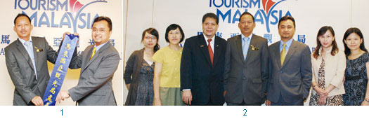 1.馬來西亞觀光局台北辦事處新舊任處長交接圓滿順利,展望未來。 2.馬來西亞觀光局台北辦事處新任處長禾潤(左4)、前任處長拿希亞(左5)與團隊成員合影。
