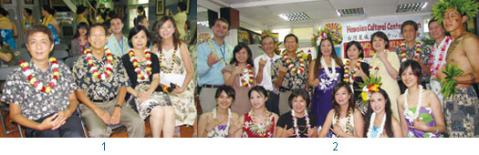 1.(左起)夏威夷州政府駐台北辦事處處長雷均、夏威夷觀光局代表施春庭、施代表夫人、夏威夷觀光局行銷經理張燕君。2.(後排左起)美國在台協會商務組馬宜德、美國在台協會商務組田乃文、夏威夷觀光局代表施春庭、台灣夏威夷文化中心交流協會理事長樊彥伶、施代表夫人、環洋旅行社總經理陳安茵、夏威夷州政府駐台北辦事處處長雷均、夏威夷龍門運通地區總經理孔繁竹。