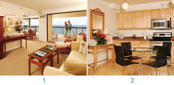 1.Aston Waikiki Beach Tower房景。2.雅詩頓酒店多數房間內配有廚房。(圖片提供>雅詩敦酒店及度假村集團)