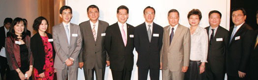 ▲開幕慶祝午宴與會貴賓合影,(左起)香港旅發局台灣處長徐維妮、香港旅發局總幹事劉鎮漢、港台經濟文化合作協進會秘書長李佩詩、香港特區政府商務及經濟發展局局長蘇錦樑、財團法人台港經濟文化合作策進會董事長林振國、香港旅發局主席田北俊、交通部觀光局長賴瑟珍、香港特區政府旅遊事務專員容偉雄、香港旅發局大中華區域總經理葉貞德、行政院大陸委員會港澳處專門委員曾美莉。