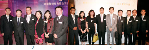 3.開幕慶祝午宴與會貴賓合影,(左起)華信航空營業部協理張酉光、香港旅發局總幹事劉鎮漢、華航台灣地區處長兼台北分公司總經理孫鴻文、香港旅遊發展局大中華區域總經理葉貞德、香港旅發局台灣處長徐維妮、華航台北分公司行銷策劃部經理陳乾儀。4.開幕慶祝午宴與會貴賓合影。