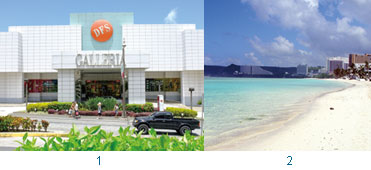 1.關島DFS免稅店以保養品與彩妝寵愛美人。2.美麗的杜夢灣海灘令人流連忘返。