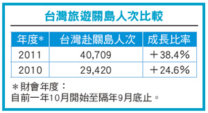 賴碧娜分析,2011年影響關島觀光發展有2件大事,一為原計畫旅遊日本的民眾在地震事件後,必須改變旅遊目的地,而關島在明星婚禮的宣傳下,成為受矚目的選擇;另一為長榮航空自6 18開通桃園─關島直航後,帶動顯著成長,統計有超過 12,000入境人次增加。而年度主要客群中,最大比例為觀光度假,其次受名人結婚風潮與建國百年影響,婚禮市場大幅成長,其他還有MICE、運動、夏令營等族群均有提升。台灣到關島3.5小時的飛行時間,加上免簽證,不僅說走就走,更帶給許多受限身體條件而害怕長途旅行的人有實現旅行夢想的機會,旅遊環境適合家人、情侶、朋友同遊;關島購物免稅更讓人能盡情享樂。