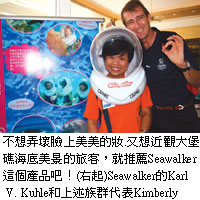 前往大堡礁的遊艇公司非常多,Sunlover Reef Cruises有幾個特點值得業界參考。這家公司選擇前往外堡礁海上的摩爾礁,船程只要40分鐘,讓遊客可以在礁上停留4.5小時(一般停留3小時),在礁岩上的海上平台是今年5月才開始啟用的全新設備,更衣室及淋浴間數都比較多,方便遊客使用,還特別為不適合下海的小朋友設計兒童泳池,還有世界最大的海底漫步平台及50人座的水下觀賞室,並且有中文解說員服務。目前有承接雄獅及鴻大的大堡礁團體。www.sunlover.com.au
