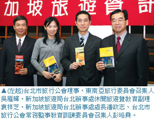 新加坡旅遊局於1/17在台北市旅行商業同業公會舉辦旅遊資訊推廣及介紹,台北市旅行公會理事/東南亞旅行委員會召集人吳雁輝表示,「此次特別在公會舉辦新旅局旅遊資訊推廣會,藉此讓會員多一個管道可更加了解銷售的產品。」