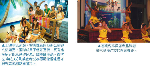 為讓業者進一步了解塞班產品,塞班悅泰假期與長榮攜手展開全省說明會,3月12日於新竹煙波大飯店;13日台中永豐棧麗緻酒店;14日於台南、高雄都將舉辦同業說明會,有興趣的業者可逕向悅泰假期查詢,電話:(02)25096111。