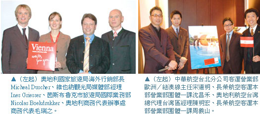 去年可說是奧地利在歐洲旅遊上十分風光的一年,不僅適逢莫札特250歲週年紀念,配合華航開航台北—維也納航線,在話題性和航班配合優勢之下,去年奧地利的觀光表現十分亮眼,奧地利國家旅遊局海外行銷部長Micheal Duscher表示,「2006年造訪奧地利的台灣旅客共有4萬多人次,相較於前年成長率高達32.5%,和歐洲整體的旅客成長率5.7%相比,是個非常令人興奮的數字,因此今後也將把台灣視為亞洲的重點市場之一,提供更多資源促進台灣市場的發展。」
