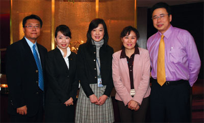 (左起)中華航空台北分公司客運營業部商務組主任呂若阜、客運處旅遊策劃部經理曹志芬、台北分公司客運營業部經理唐慧明、香港旅遊發展局旅遊推廣經理徐維妮與台北分公司客運營業部商務組主任姜紀中