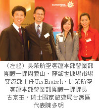 由瑞士國家旅遊局所舉辦的年度重要活動~瑞士旅遊說明會STE2007。今年與會的瑞士旅遊機構共計有19個單位,由瑞士國家旅遊局亞洲區局長孜賓頓率領出席,並依據單位性質不同分為「鐵道與高山纜車」以及「都會旅遊與航空、飯店」兩個組別,帶來了最新的瑞士旅遊資訊以及精心設計的各種產品,同業參與情形十分踴躍。