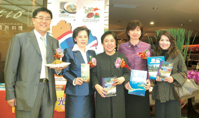 ▲(左起)泰軒國際餐飲集團總經理薛樂山、泰國貿易經濟辦事處商務組代表蘇錦棠、駐台總代表Arbhorn Manasvanich、泰國觀光局台北辦事處副處長鄭麗仙、公關經理高憶。