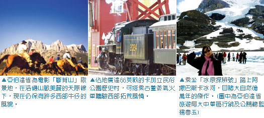 豐富自然資源也是「牛仔之鄉」亞伯達省獨特的旅遊素材之ㄧ,業者在旅遊產品包裝上也多強調能欣賞到大器山水、風光明媚與豐富人文景觀的原野氣息,加上熱度持續不減的「斷背山」熱,加拿大亞伯達省旅遊局大中華區行銷及公關總監楊春玉特別推薦境內的「卡加立民俗公園歷史村」。