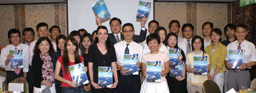 ▲(前排左2)澳大利亞昆士蘭州觀光旅遊局局長Wendy A. Levy、(前排左4)澳大利亞昆士蘭州觀光旅遊局行銷經理簡明芬,與同業餐敘,並發表昆士蘭中文旅遊指南手冊。