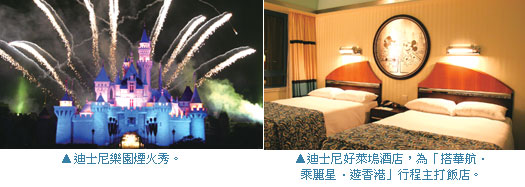 中華航空台北分公司客運營業部香港/大陸/菲律賓線主任李建勳表示,「目前與業者共同包裝出2種旅遊方式,第一:團體自遊行,10人以上成行,特殊服務:北高專人辦理登機、香港導遊專車接機、碼頭代辦登輪手續等;第二:純自由行,2人成行,天天出發,以上皆包含華航來回機票、寶瓶星號1晚住宿+早晚餐及宵夜、迪士尼好萊塢酒店/九龍市區飯店1晚住宿、船上免費娛樂設施、200萬+3萬責任醫療險以及贈送香港地鐵1日周遊券、香港導覽手冊。將以全新的套裝旅遊方式,兼具體驗郵輪樂趣和香港購物、美食的行程,提供給旅客不同以往的遊港選擇,勢必將掀_一陣旅遊炫風。」