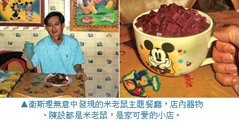 澳門美食以樣式豐、選擇多聞名,小吃、大菜各具特色,衛斯理認為澳門旅遊塔上的旋轉餐廳、漁人碼頭裡的非洲村燒烤自助等,都是不錯的餐食選擇。而由於小朋友大多都喜歡甜點、零嘴,衛斯理最推薦當地木糠布丁,這道葡式道地甜點,嘗起來如冰淇淋口感,是前往當地不容錯過的美味甜點,其他如極富盛名的葡式蛋撻、義順的雙皮燉鮮奶、豬扒包與道地餅乾,亦是不錯的選擇。此外,衛斯理在考察澳門期間,意外發現一家名為「忙裡偷閒」的米老鼠主題餐廳,餐廳陳列、擺設、餐具無處不是米老鼠,深具童趣。