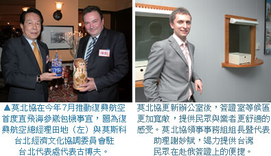 同時為增加俄羅斯對於台灣的了解,目前包括由新聞局所出版的介紹台灣的俄文刊物,以及中央廣播電台所製作的俄文廣播節目,莫北協也都積極協助其相關事務,而俄羅斯的人民也透過這些媒體的力量,對於台灣有著更多的認識,至於在俄羅斯當地的推廣上,在台灣駐俄羅斯代表處方面同樣相當積極地投入,也有著相當的成效。