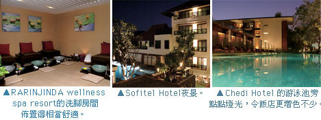 Sofitel Hotel以精美的裝璜著稱,位於市區內鬧中取靜的環境,是清邁市區內十分高雅又交通便捷的飯店,Sofitel目前有75間房,可使用房間共有73間,另2間正在進行裝修。小而美的設計是許多歐美客人都相當青睞的飯店,戶外餐廳更是另一項特殊的賣點,Sofitel追求與眾不同時尚潮流是在清邁地區能夠受到旅客喜愛的最大原因。