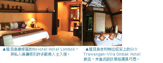 在台北—雅加達—龍目島航班方面,中華航空台北分公司行銷策劃部行銷代表李慧芳指出,目前華航台北—雅加達航班,每天2班,其中只有直飛的班機才能當日直接轉機到印尼龍目島,CI677/GA9981(共用班號)台北—雅加達航班,台北起飛 09:20、抵達雅加達13:35; 印尼國家航空秘書羅清蘭表示,印尼國家航空雅加達—龍目島航班,同樣也是每天2班,如要與華航台北—雅加達航班做搭配,需搭乘GA432班機,雅加達起飛19:45、抵達龍目島22:35,才可當日抵達龍目島。」另外,就目前龍目島旅遊發展來看,其純樸風情、親切友善如同15年前的峇里島,旅遊旺季在每年的6~8月及12/15~隔年1/15。印尼國際航空龍目島總經理Fredrik Kasiepo表示,「龍目島如沒有親自體驗無法感受其中的動人之處,友善的人們、濃厚的宗教色彩都吸引歐美旅客到訪,目前印尼國際航空雅加達到龍目島航班為每天2班,而中華航空有台北—峇里島直飛航班,未來如台灣旅客前往龍目島人數增加,屆時將視航班需求,加開『峇里島—龍目島』班機,以利台灣業者以雙點進出方式操作行程。」