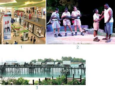 1.與聖淘沙一水之隔的怡豐城(Vivocity)為新加坡最大的購物、娛樂商場,超過800間的零售店以及新加坡最大的多功能影劇院,旅客可利用聖淘沙輕軌列車輕鬆往返二地。
