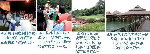 ▲(左起)新加坡航空公司業務代表沈思平、新加坡旅遊局台北辦事處商務、會展、獎勵旅遊暨公關副理葉美馨、聖淘沙集團經銷部執行員金詩莉、聖淘沙集團經銷部執行員施恩琳。新加坡旅遊局台北辦事處商務、會展、獎勵旅遊暨公關副理葉美馨指出,新旅局耗費巨資開發旅遊景點及建設規劃,希望提供更舒適的時尚購物、娛樂、休閒空間,讓來自全球不論是參加獎勵旅遊、世界性展覽或是國際會議的商務人士均能在最佳環境之下,進行業務洽商與休閒活動。除了新加坡本島之外,鄰近新加坡的離島「民丹島」,從新加坡出發只需要短短50分左右就可馬上感受到截然不同的環境生態,島上有各種SPA療程及各具特色的休閒度假中心,還有商務人士最愛的高爾夫球場等,都可規劃成獎勵旅遊的主題。