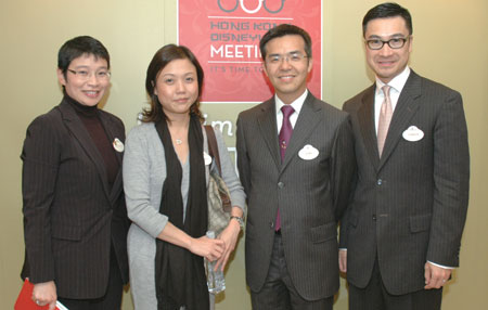 ▲香港迪士尼團隊合影。(左起)香港迪士尼樂園度假區旅遊市務經理陳超群、銷售經理鄧慧嫻/譚中舜、旅遊銷售總監胡耀升。