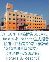 位居日本國內第6大的飯店連鎖集團—SOLARE Hotels & Resorts株式會社日前來台推廣,旗下除了CHISUN系統、LOISIR系統飯店以外,更包含了SOLARE Collection~沖繩萬豪休閒度假飯店、Holiday Inn京都、神戶灣喜來登酒店等,截至2008年3月底止,共有4,800名員工、57家飯店,營運總房數為11,000房,並同時提供特許經營授權與投資管理服務。