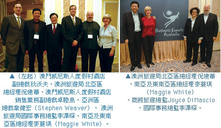澳洲推展MICE的年度盛會—「獎勵及會議旅遊研習會(Team Australia Business Events Educational,簡稱TABEE)」今年於3月3日舉辦,並且為了慶祝10週年,場地選在近期最受矚目、話題性十足的澳門威尼斯人渡假村酒店(The Venetian Macao Resort Hotel),澳洲旅遊局北亞區總經理倪建華表示,「不可諱言的,澳門威尼斯人的吸引力極大,可能超過活動本身,但也是讓『澳洲商務聯盟』的夥伴們以及來自澳洲的賣家(Seller)藉此機會了解其他地區在爭取MICE客源上的競爭力所在。」