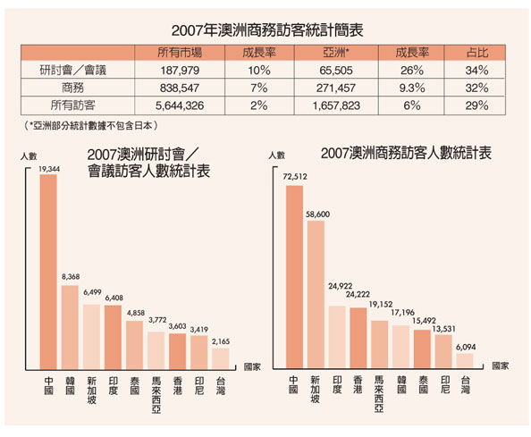 TABEE自1999年首度舉行,之後每年都在亞洲不同的城市輪流開展,前9屆先後於:新加坡/香港、曼谷(連續3屆)、普吉島、香港(連續2屆)、曼谷、上海舉行,參與的會議旅遊局從當初的4家到12家;賣家從10多家到50多家;受邀買家則從46家到超過100家,規模年年擴大,正反映了效益的增加。根據統計,2007年前往澳洲參與會議或研討會的旅客有18萬7,979人,同比增加10%,從事商務活動者有83萬8,547人,同比成長7%,而其中來自亞洲地區的訪客分別為6萬5,505人與27萬1,457人,除了各自的同比成長率高達26%以及9.3%,更佔全部市場的34%與32%,因此澳w對於持續經營亞洲MICE市場投注相當心力。另外,最近4屆TABEE當中,香港、上海與澳門相繼被選為第7、9與10屆的舉辦地點,中國市場被看重的程度可見一斑。