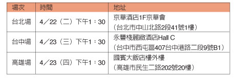 台北場 4/22(二)下午1:30 京華酒店1F京華會