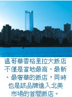 溫哥華香格里拉大飯店樓高61層,Jeff Froehlich表示是當地樓層最高的飯店,其中1~15樓層全數規劃做為飯店房間使用,目前共有119間房間,房間坪數14坪起跳,房間之大,飯店業少見。香格里拉飯店品牌向以設計細膩、房間奢華著稱,即將開幕的溫哥華香格里拉大飯店將品牌精神發揮得淋漓盡致,例如部分房間內就配置可與iPod連接使用的40吋液晶螢幕,讓入住旅客倍感尊榮。佔有地利之便更是該飯店一大優勢,Jeff Froehlich指出,飯店坐落溫哥華市中心,週邊相當熱鬧,可同時滿足住客購物慾望與一探當地夜生活的想望。此外,由此從飯店前往機場僅約20分鐘,交通相當方便。