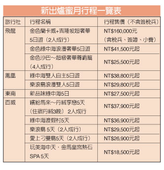 隨著6月結婚旺季即將到來,馬來西亞觀光局特別結合東南、飛龍、百威、鳳凰等4家旅行社,推出蜜月旅行精選行程。馬來西亞觀光局台北辦事處處長拿希亞表示,「距離台灣僅需約4小時飛行時間的馬來西亞,擁有獨具特色的度假飯店及親切貼心的頂級服務,滿足新人對浪漫蜜月的需求。為了迎接6月結婚旺季,馬來西亞觀光局特別號召旅行社,推出多種適合新婚蜜月的行程選擇,滿足新人們的各式需求,在浪漫滿溢的馬來西亞,共享甜蜜兩人世界!」