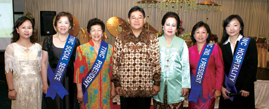 ▲(前排左起)台北市國際婦女協會會員組主任周郁萍、社會服務組主任王素珠、會長林理俐、駐台北印尼經濟貿易代表處代表費立伉儷、台北市國際婦女協會第二副會長馮文穎、接待組賴秀珍。
