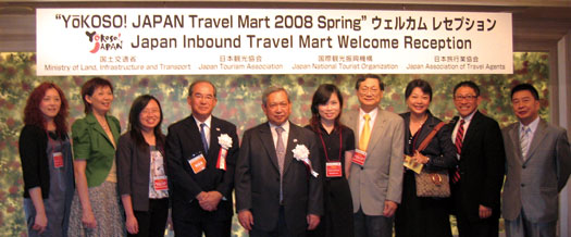 旅展期間同時舉辦的「海外赴日旅遊交易會」(YOKOSO!Japan Travel Mart' 2008春),邀請了世界各國主要的旅遊業者,進一步與日本業者交流,不僅可獲取新的商機,亦可交換意見與情報。交易會前還舉行5天4夜的業者考察團,主辦單位準備了10條精華路線,以方便業者在行程商品規劃有所助益。日本觀光協會台灣事務所亦邀集14名台灣航旅業者共襄盛舉。值得注意的是,今年是日觀協首次邀請台灣地區的航空公司個人商品規劃人員代表參加,期望藉此協助規劃更多產品,進一步滿足更多FIT旅客需求。