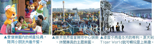 【愛寶樂園】愛寶樂園是一個包括動物園、遊樂園、雪橇場及植物園等的大型主題公園。且由三種主題公園的慶典世界(Festival World)、加勒比海灣及愛寶樂園賽車場(Speedway)組合而成。慶典世界內具有世界級規模的購物街、全球集市、美洲探險、神奇樂團、歐洲探險及赤道探險等設施;水上公園加勒比海灣每逢夏天就擠滿了衝浪愛好者。常常讓旅客印象最深刻的是獅子、老虎就近在身旁,還親自餵食野生猛獸,真的令人膽戰心驚,也將是難得體驗。正所謂親子旅遊,就是要讓小朋友們留下最深刻的記憶。