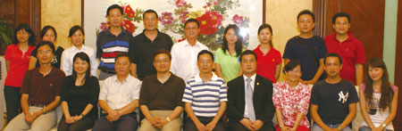 ▲ 澳門旅遊局台灣區經理林鴻祥(前排左4)率領台灣同業與媒體一同前往江門市考察,江門市旅遊局長周錦新(前排左5)也率各單位負責人與大陸同業一同接待。(前排左起)《世界文化遺產雜誌》特約撰述馬繼康、澳門旅遊局市場處錢淑儀、江門市旅遊局副局長馮裕聰、逸豪酒店總經理高為民、上順旅行社副總經理吳素月、雄獅旅行社產品部大陸港澳線主任主任郭信志、上順旅行社專案企劃李妍霏;(後排左4起)江門市國際旅行社總經理曾鉅能、江門市中國旅行社總經理張承、江門市大方旅遊國際旅行社副總經理林超、易遊網旅遊二處亞洲個人部經理陳秋如、燦星旅行社產品經理賴麗娜、《世界文化遺產雜誌》主編洪崇耀。