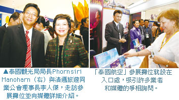 泰國觀光局與泰國航空於10╱7~f0 13規劃「Visit amazing Thailand 2009」盛會以及「2008第5屆清邁旅遊展(Chiang Mai & The North Tourism Forum 2008)」的旅遊考察團,邀請全球旅遊業者以及媒體近800名前往參訪。此次台灣考察團由泰國航空業務經理沈心善、泰國航空業務推廣組主任傅運生、泰國觀光局台北辦事處資深專員黃利平帶領20位旅行業者和媒體進行曼谷、清邁、清萊等地區深度考察。