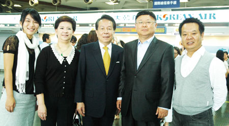▲ (右起)濟州地接-慶安旅行社理事王學祖、濟州特別自治道觀光政策課課長梁景好、復興航空總經理田地、夫人羅家琳、韓國濟州特別自治道政府駐台觀光推廣辦事處處長慕馨。