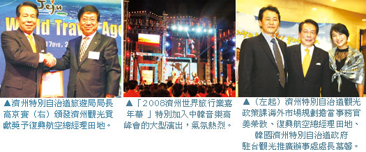 濟州特別自治道觀光協會會長洪明杓認為,以往國際間對於濟州的觀念多停留在「神秘之島」、「傳說之島」的形象概念上,但經過多年來相關單位與各國業者的付出,如今的濟州已是觀光資源豐富且各項旅遊設施完備的人氣旅遊目的地之一,他相信藉由持續的與業界交流,並不斷更新旅遊元素,針對遊人所興趣的旅遊環節作重點開發,未來濟州觀光的實力將越見堅實。
