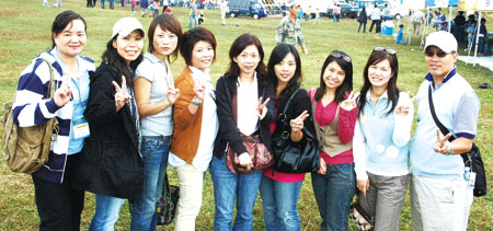 ▲ (左起)狀元國際旅行社總經理陳文里、興安旅行社經理車培華、燦星旅遊東北亞主任林淑真、五福旅遊團體行銷部經理李雯華、京城天下旅行社林品岑、易遊網旅遊一處東北亞團體部產品企劃主任王莉衿、東南旅行社東南亞部課長姜秋月、康福旅行社經理萬麗香、喜麟旅行社副總經理鄭國麟。